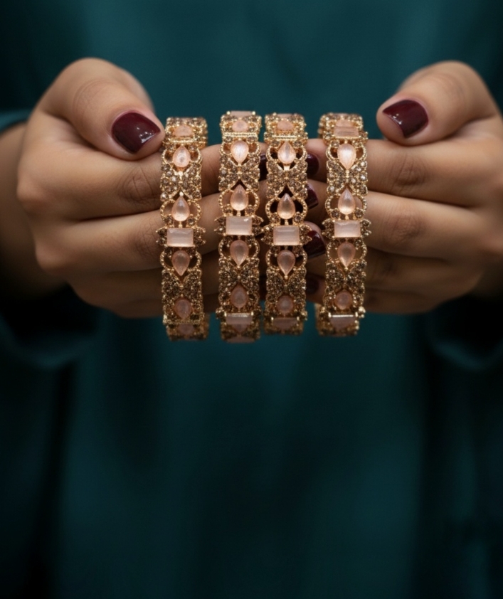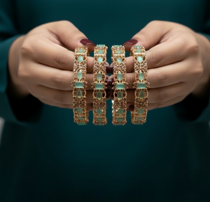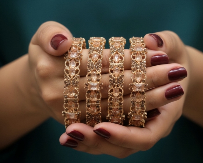 Shop Casting Bangles for Women at Fortune Fabric Store, featuring an elegant casting design with a premium polished finish available in silver and golden tones. These stylish bangles are crafted for a luxury look and durable wear, perfect for everyday styling and festive occasions. Available in sizes 2.6, 2.7, and 2.8, these bangles offer a comfortable fit with a modern and graceful appeal.