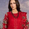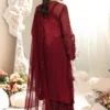 The ensemble is paired with a stunning embroidered organza dupatta featuring sequin work and 3D floral details with embroidered pallu, giving the outfit a rich formal finish. A dyed raw silk trouser completes this luxurious 3-piece formal dress.