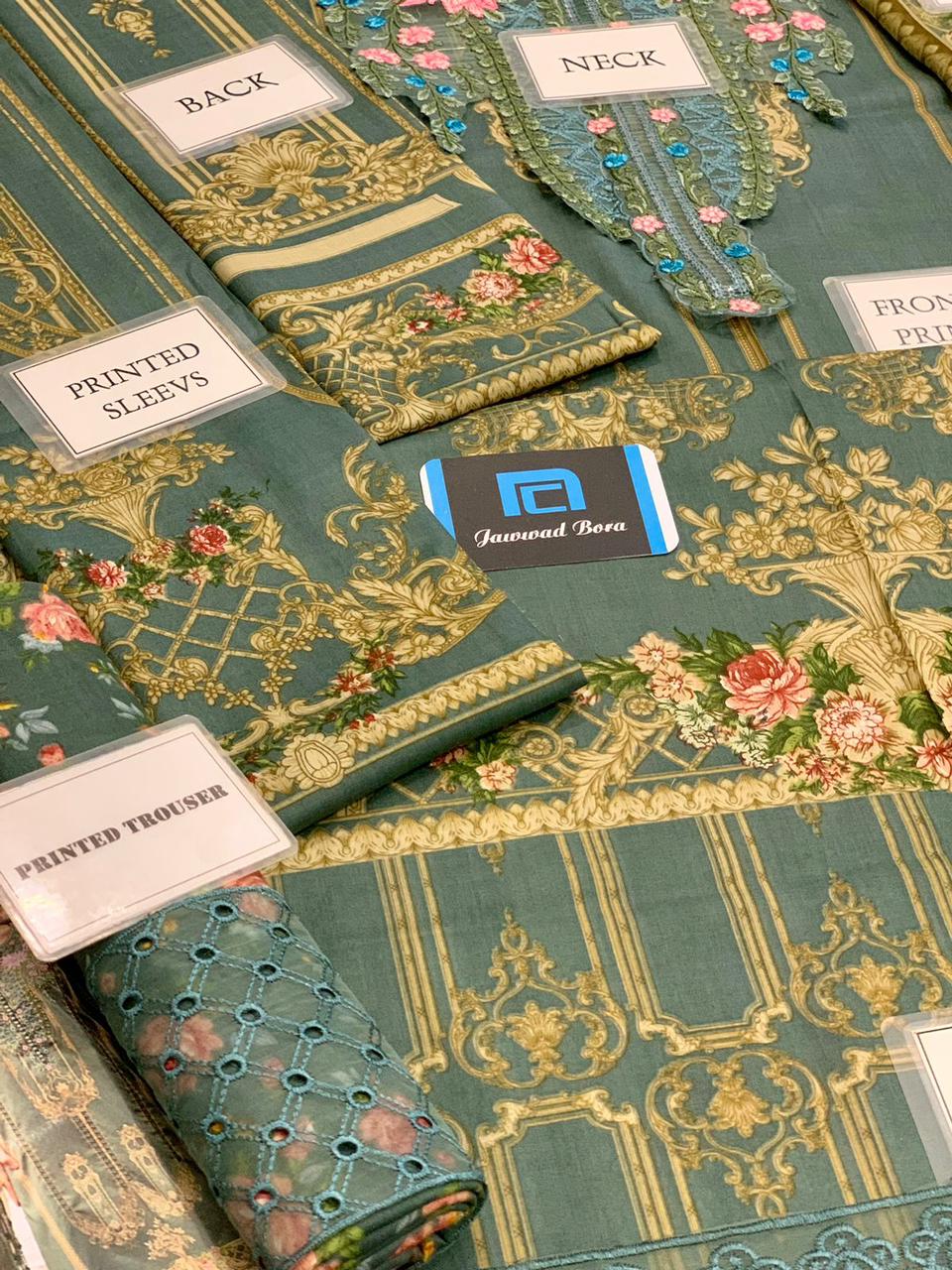 - Printed Lawn Front with Heavy Embroidered Spangle Work Neckline