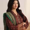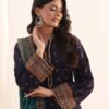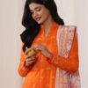 The outfit features a premium quality gold paste printed lawn shirt (front, back & sleeves) that gives a classy Banarsi-inspired appearance. It is paired with a premium dyed cambric trouser and a gold paste printed voile lawn dupatta, completing a graceful summer ensemble.