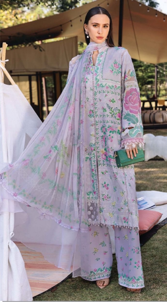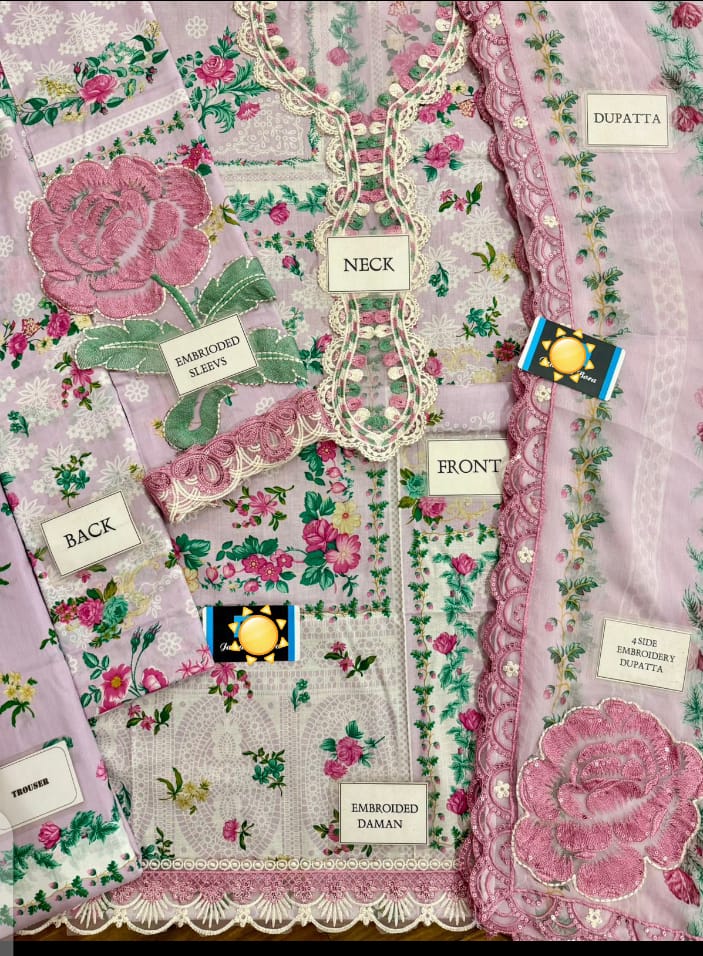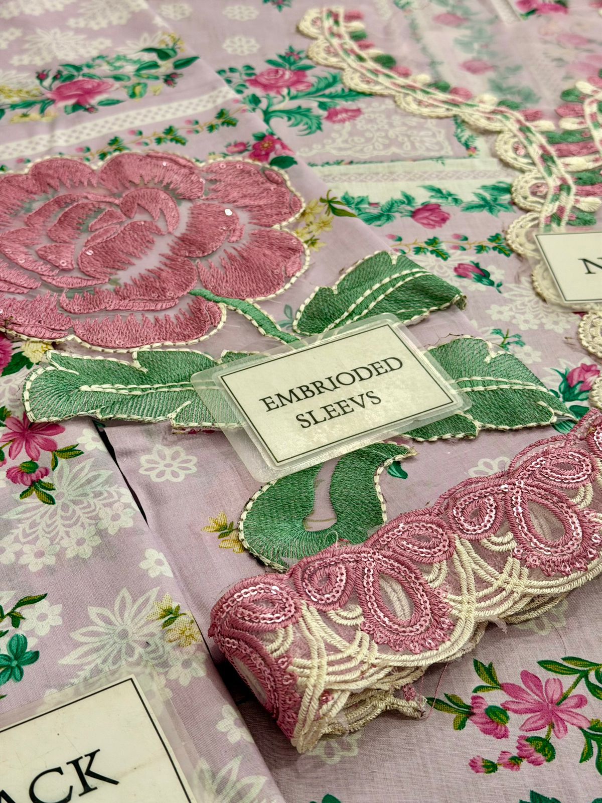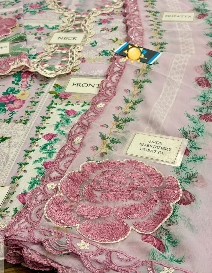 Upgrade your summer style with this trending printed lawn suit, beautifully enhanced with heavy spangle (sequin) embroidery for a chic and festive look.