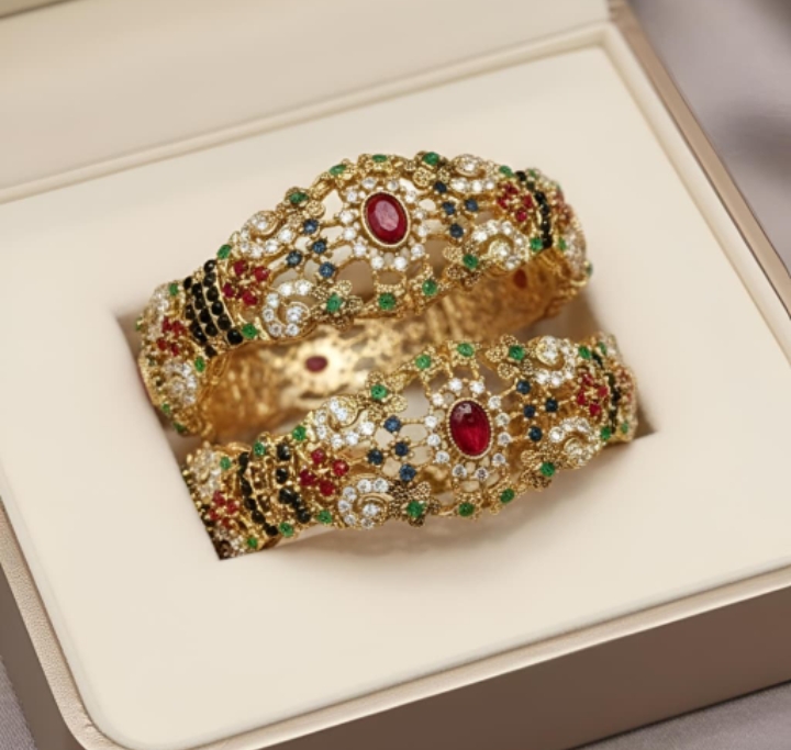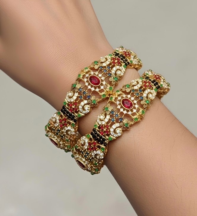 Enhance your ethnic look with these beautifully crafted Noratan two-piece bangles, designed with a rich traditional finish and a luxurious shine 💫. Perfectly suited for bridal wear, weddings, festive occasions, and formal events, these bangles add timeless elegance to any outfit.